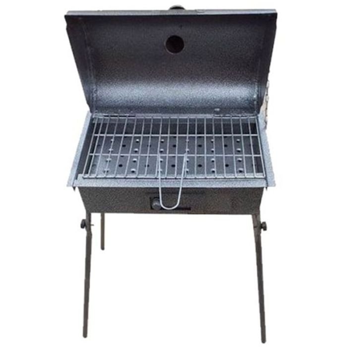 Barbecue avec couverle – Cuve et couvercle en fer- idéal pour cuire de la bonne viande et pour le camping, jardin, plage – Fait passer votre expérience de plein air – Dimensions: 48 x 30 x 25 cm