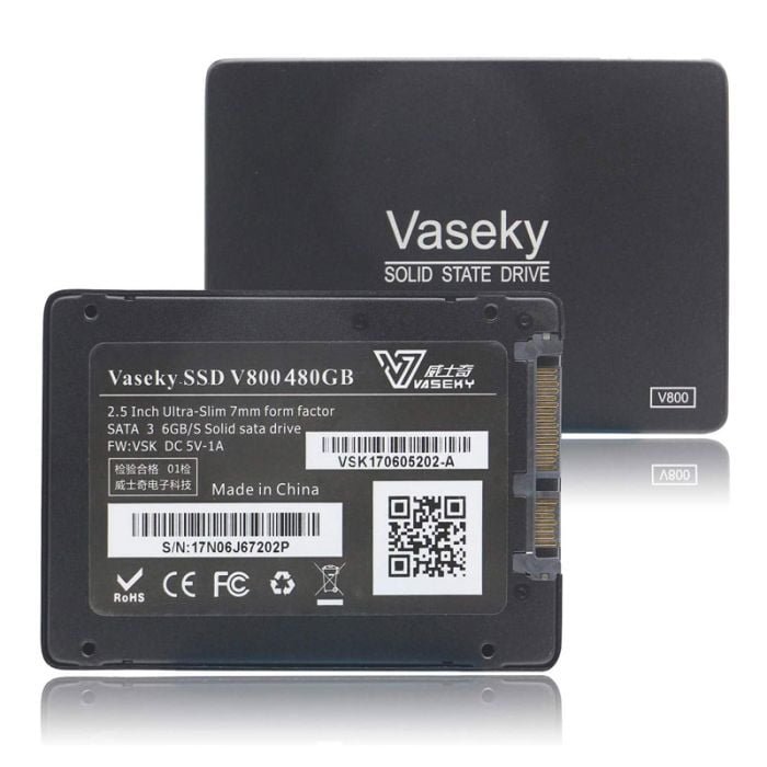 Disque Dur Interne VASEKY V800 ULTRA SLIM – Capacité: 480 Go – Type de Disque: SSD – format de Disque: 2.5 pouces – Contrôleur: SMI 2236 – Interface: SATA 3 – Continu d’écriture: 110 MB/s – Persistants de lecture: 325 MB/s – Dimensions: 100 x 70 x 7mm – Couleur: Noir – Garantie: 1an