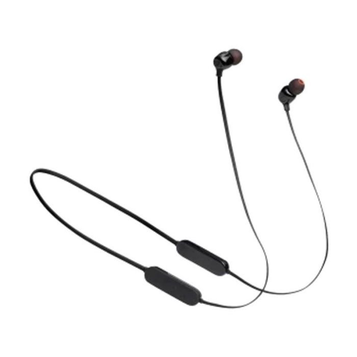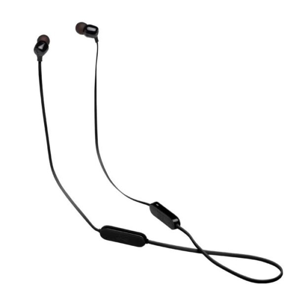 Écouteurs JBL T125BT – Technologie de connectivité: Sans Fil (Bluetooth) – Réponse en Fréquence: 20 Hz – 20 KHz – Batterie rechargeable intégrée – Temps de charge: 2 heures – Autonimoe de batterie: 16 heures – Avec une charge de 15 minutes, vous obtenez 1 heure de lecture – Kit mains-libres 3 touches – Microphone intégré – Câble plat anti-nœuds – Son JBL Pure Bass – Connexion multi-points – Couleur: Noir – Garantie: 1an