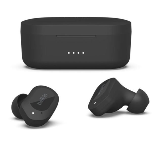 Écouteurs Sans Fil BELKIN SOUNDFORM Play True – Technologie de connectivité: Bluetooth 5.2 – 38 heures d’autonomie de batterie: 8 heures d’autonomie pour les écouteurs, plus 30 heures dans l’étui de chargement – 10 minutes de charge donneront rapidement 60 minutes d’autonomie – Microphone intégré – Suppression du bruit – Charge rapide en seulement 1,5 heure – Commandes tactiles – Résistance à la sueur et à l’eau classée PX5 – Pilotes dynamiques de 6 mm – Couleur: Noir – Garantie: 1an