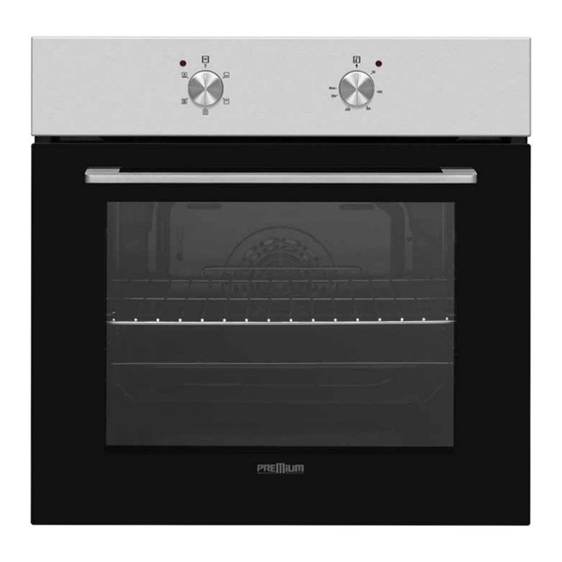 Four Électrique Encastrable Premium AF6050.X01 – Volume : 65 Litres – Autonettoyant avec vapeur – Eclairage halogène – Ventilateur de refroidissement – Classe d’efficacité énergétique : A – 6 modes de cuisson : fonction statique, fonction haute, fonction chaleur tournante – Largeur : 60 cm – Couleur : Inox – Garantie : 2 an