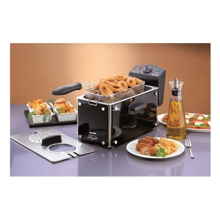 Friteuse Fry Plus PALSON – Capacité: 3 Litres – Carcasse en acier inoxydable avec des finitions « Black-Glass » – Design moderne et innovateur – Deux poignées et manche du panier au tact froid – Thermostat de température réglable – Panier avec un manche au tact froid – Indicateurs lumineux d’allumage et de chauffage – Entièrement démontable pour un nettoyage facile – Couleur: Inox – Garantie: 2ans