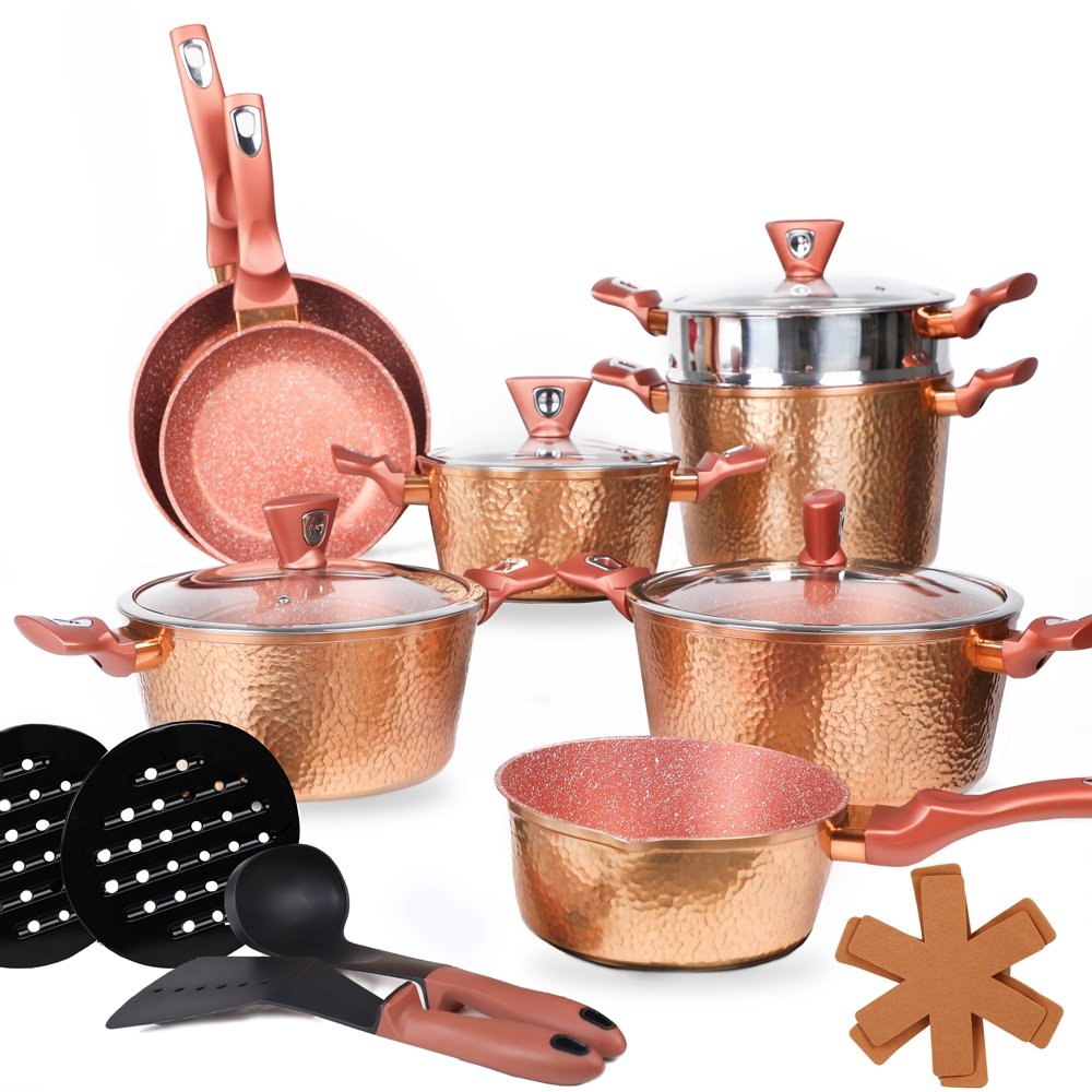 GOLDEN HOUSE Batterie De Cuisine En Granite 18 Pièces Effet Cuivre doit être acheté par multiple de 1