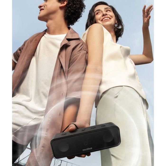 Haut Parleur Mobile ANKER Soundcore 3 – Technologie de connectivité: Bluetooth – Puissance: 16 Watts – Batterie rechargeable avec capacité 3350 mAh – Temps de charge: environ 4 heures – Autonomie batterie: Jusqu’à 24 heures – Étanche IPX7 – Charge rapide via USB-C – Hautes fréquences jusqu’à 40 kHz – Technologie PartyCast: relier plus de 100 enceintes PartyCast pour synchroniser la musique entre elles sans décalage – Couleur: Noir – Garantie: 1 an