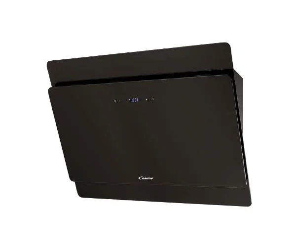 Hotte Murale CANDY – Largeur: 90 cm  Nombre de vitesses: 4 – Type: décorative – Filtre à charbon – éclairage: LED – Débit d’air: 850 m3/h – Couleur: Verre Noir – Commande tactile  Garantie: 2 ans.