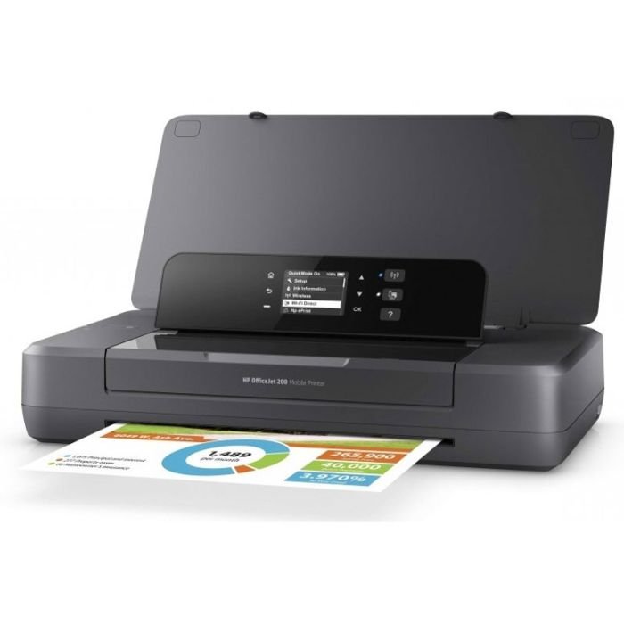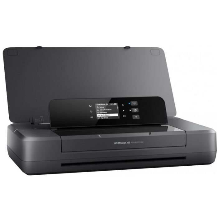 Imprimante portable HP OfficeJet 202 – Fonction: Impression – Format Papier: A4 – Technolgie d’impression: Jet d’encre thermique  – Vitesse d’impression: Sur secteur : jusqu’à 20 ppm; Avec la batterie : jusqu’à 18 ppm   (N&B) / Sur secteur : jusqu’à 19 ppm; Avec la batterie : jusqu’à 17 ppm (Couleur) – Qualité d’impression noire (optimale): Jusqu’à 1200 x 1200 ppp rendus pour une impression depuis un ordinateur / Qualité d’impression couleur (optimale): Jusqu’à 4 800 x 1 200 ppp optimisés couleur (si impression depuis un ordinateur et entrée 1 200 ppp) – Mémoire: Barrette DDR3 de 128 Mo – Gestion d’introduction du papier, standard: Jusqu’à 50 – Recto-Verso: Manuel (avec prise en charge des pilotes) – Connectivité: 1 port USB 2.0, port Wi-Fi– Dimensions: 364 x 186 x 69 mm – Poids: 2,1 kg – Couleur: Noir – Garantie: 1 an