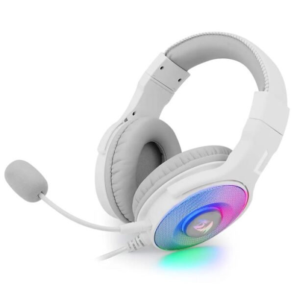 Micro Casque Gamer Redragon Pandora – Connectivité: Filaire – Inerface: jack 3.5mm + USB – Diamètre de Casque: 50mm -Type de casque: Circum-Auriculaire – Des coussinets confortables en mousse – Rétroéclairage RVB dynamique – Son surround stéréo -Microphone amovible – Fonctionne pour PC/PS4/XBOX One/NS – Couleur: Blanc – Garantie: 1 an